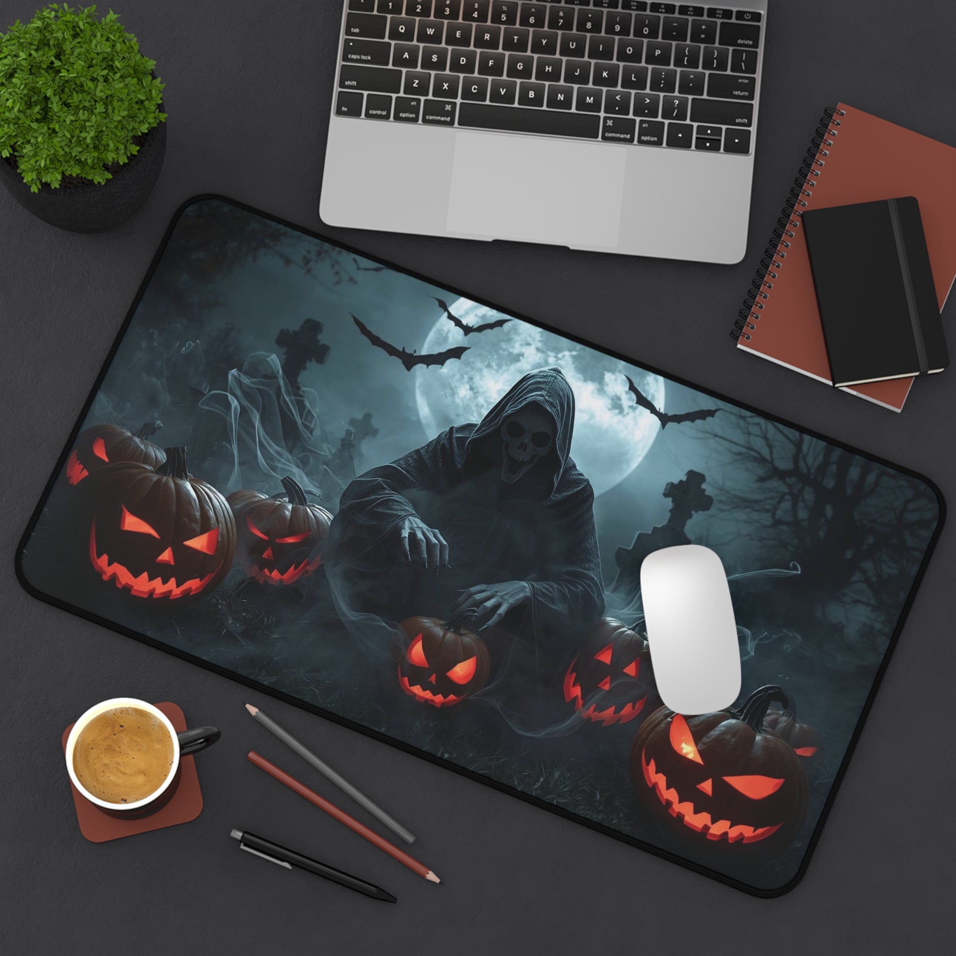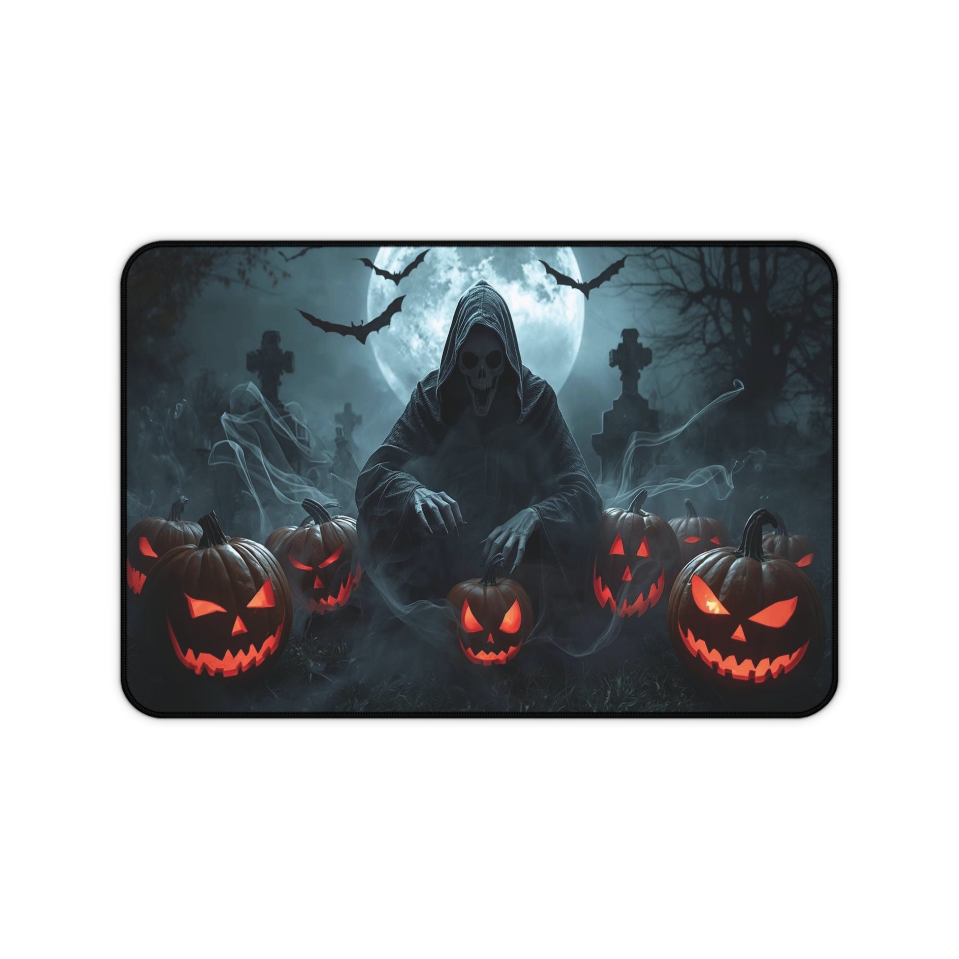 Spooky Halloween Desk Mat - Creepy Skull and Pumpkin Design, Office Decor, Gaming Mat, Halloween Gift, Ghostly Atmosphere